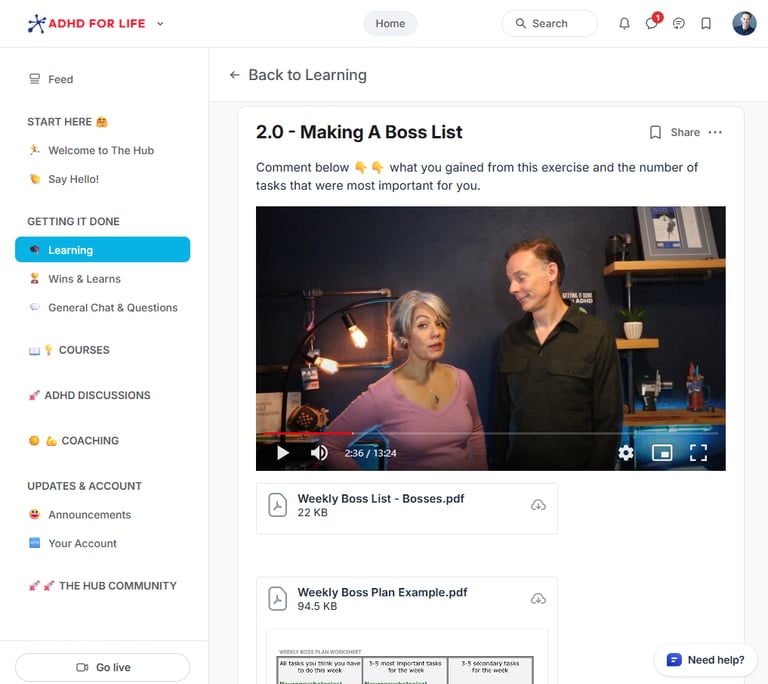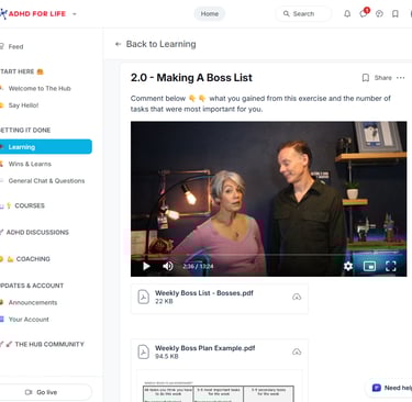 The Getting It Done course provides the deep strategy (The Why), while the UForward Planner provides the immediate action (The How). Together, they create a feedback loop that builds momentum, even on your "low-dopamine" days. And The ADHD Hub puts it under one roof.